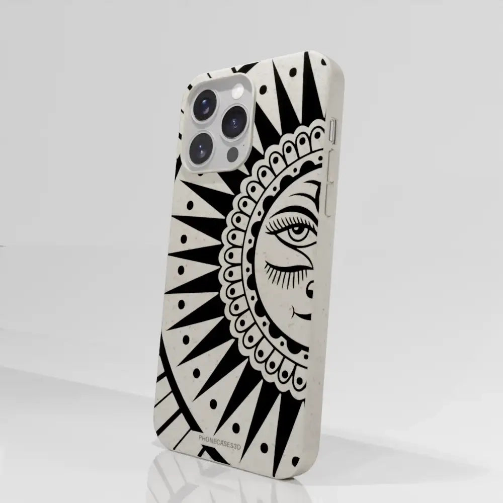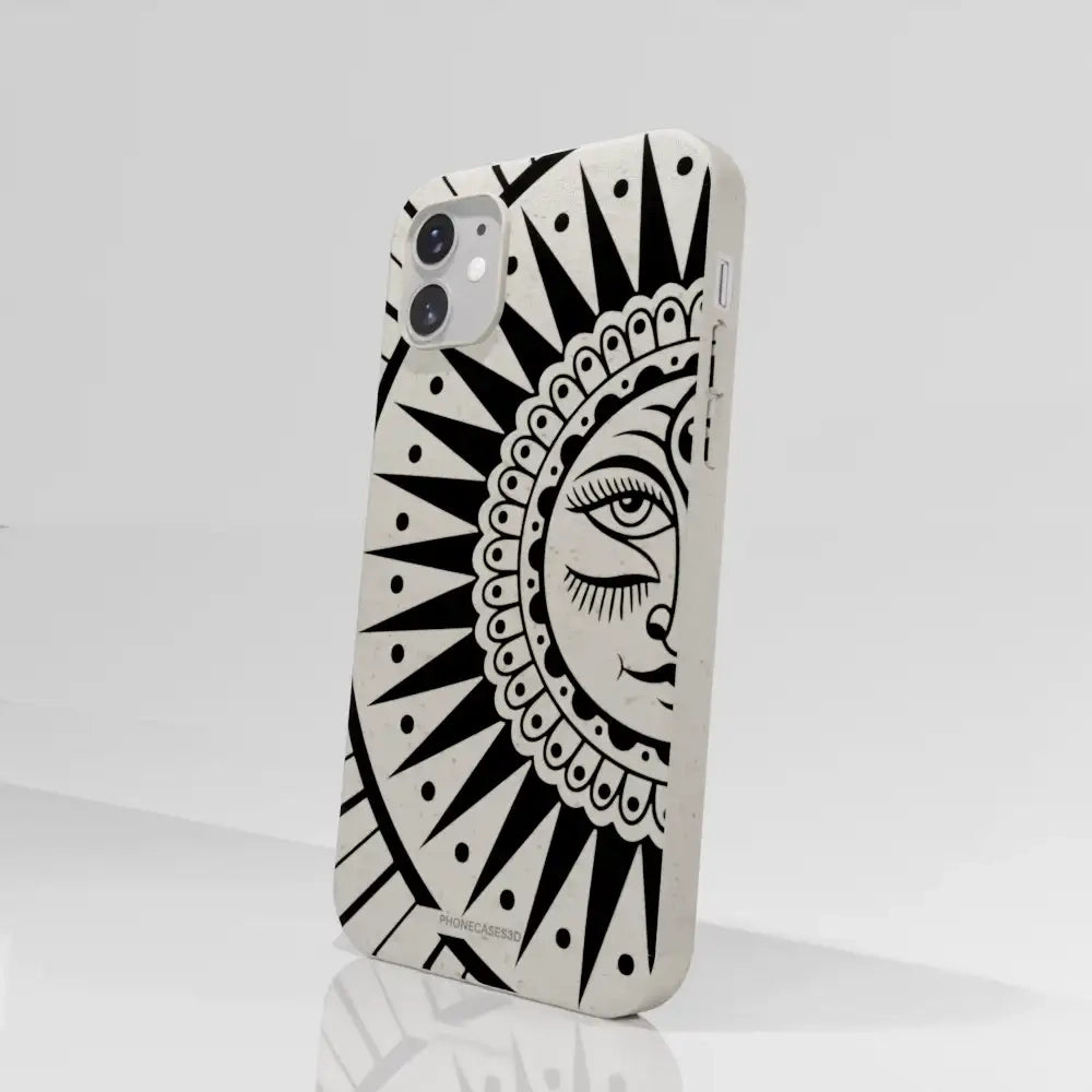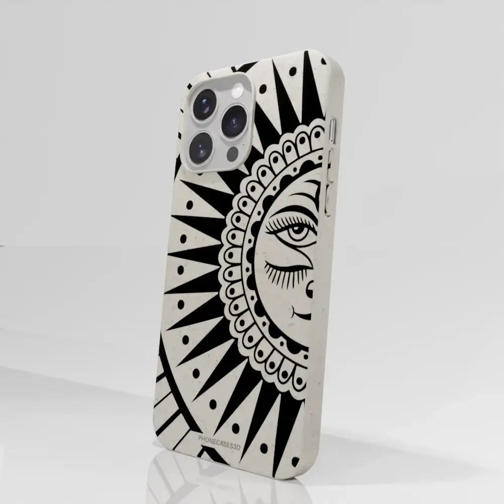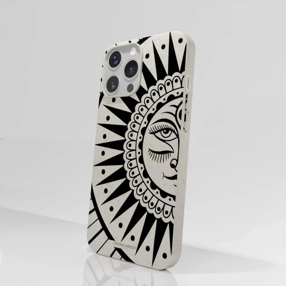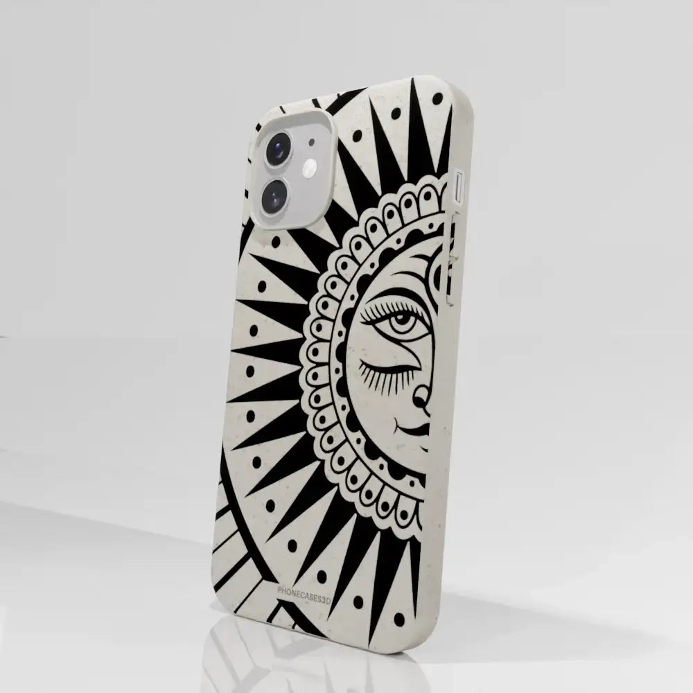 Sinsentido Official Compostable Phone Case Design Black and White Cosmic Sun