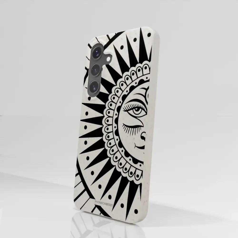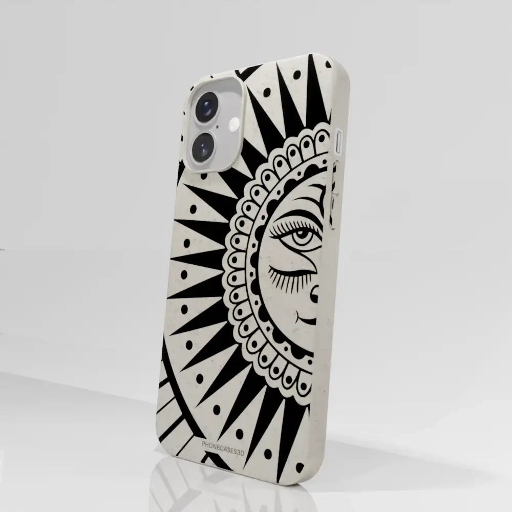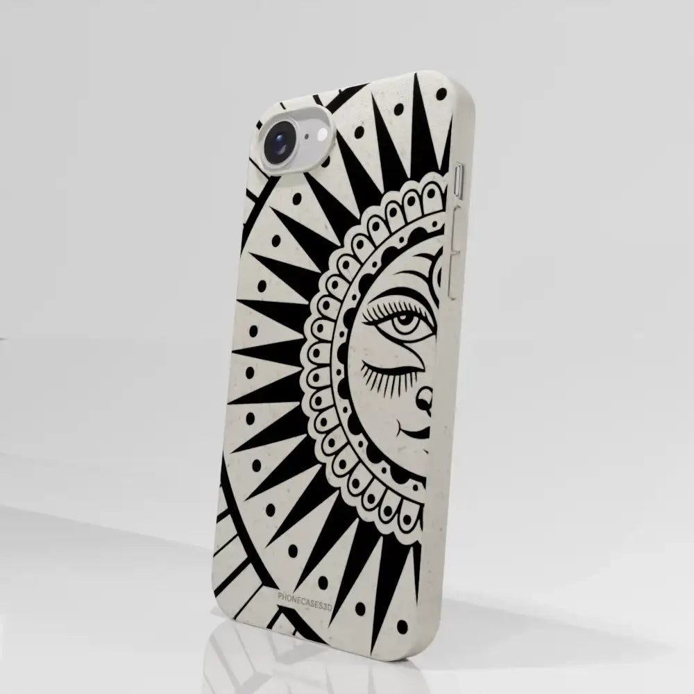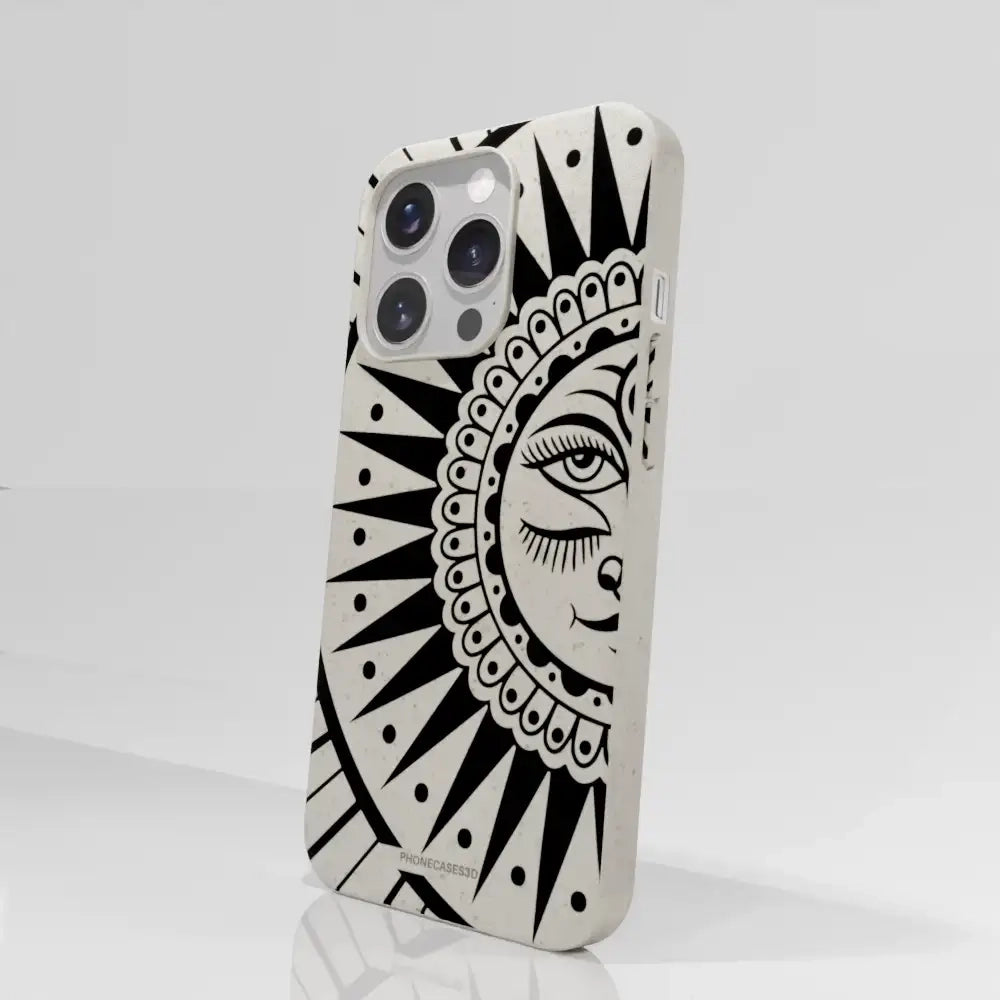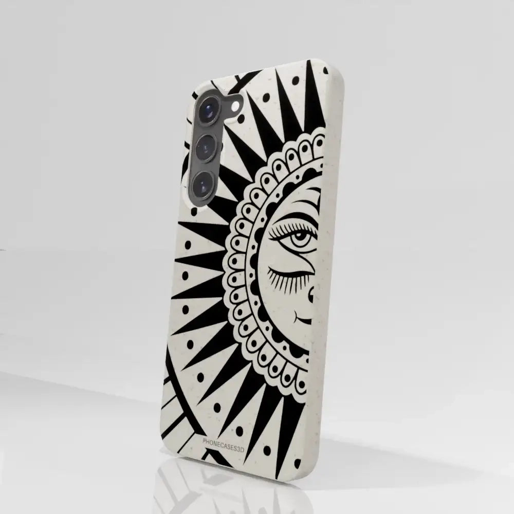 Sinsentido Official Compostable Phone Case Design Black and White Cosmic Sun