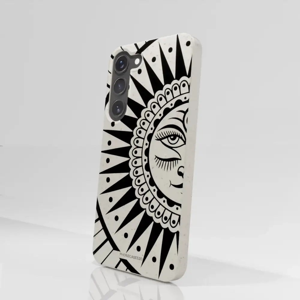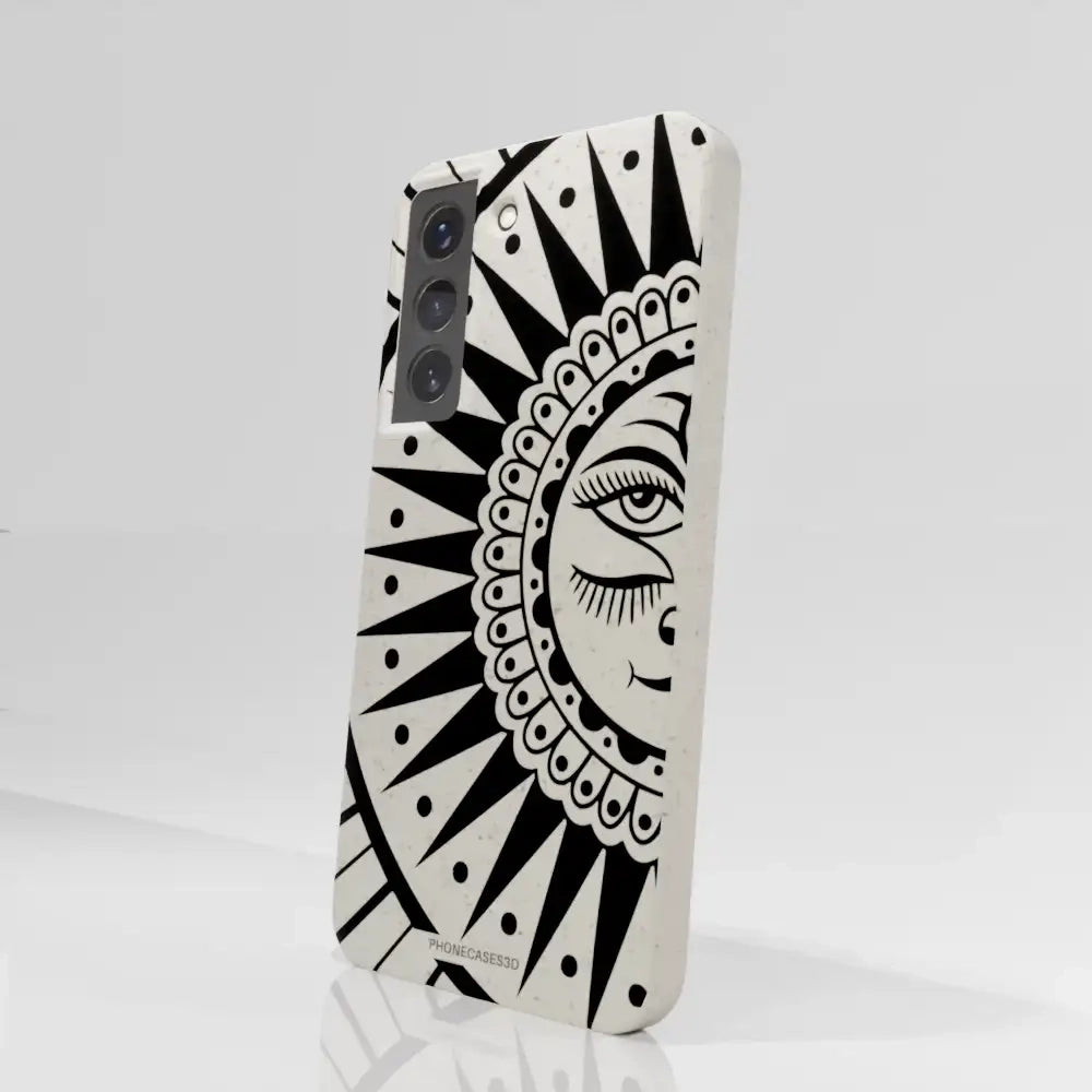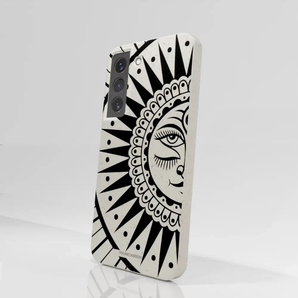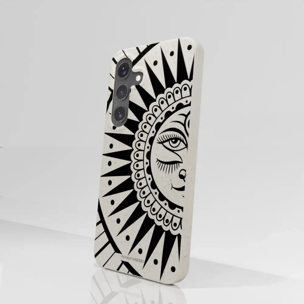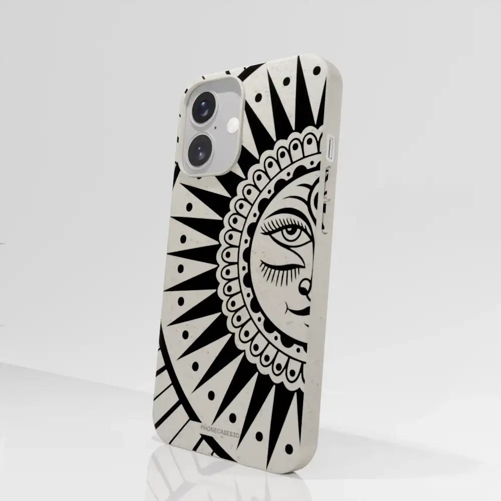 Sinsentido Official Compostable Phone Case Design Black and White Cosmic Sun