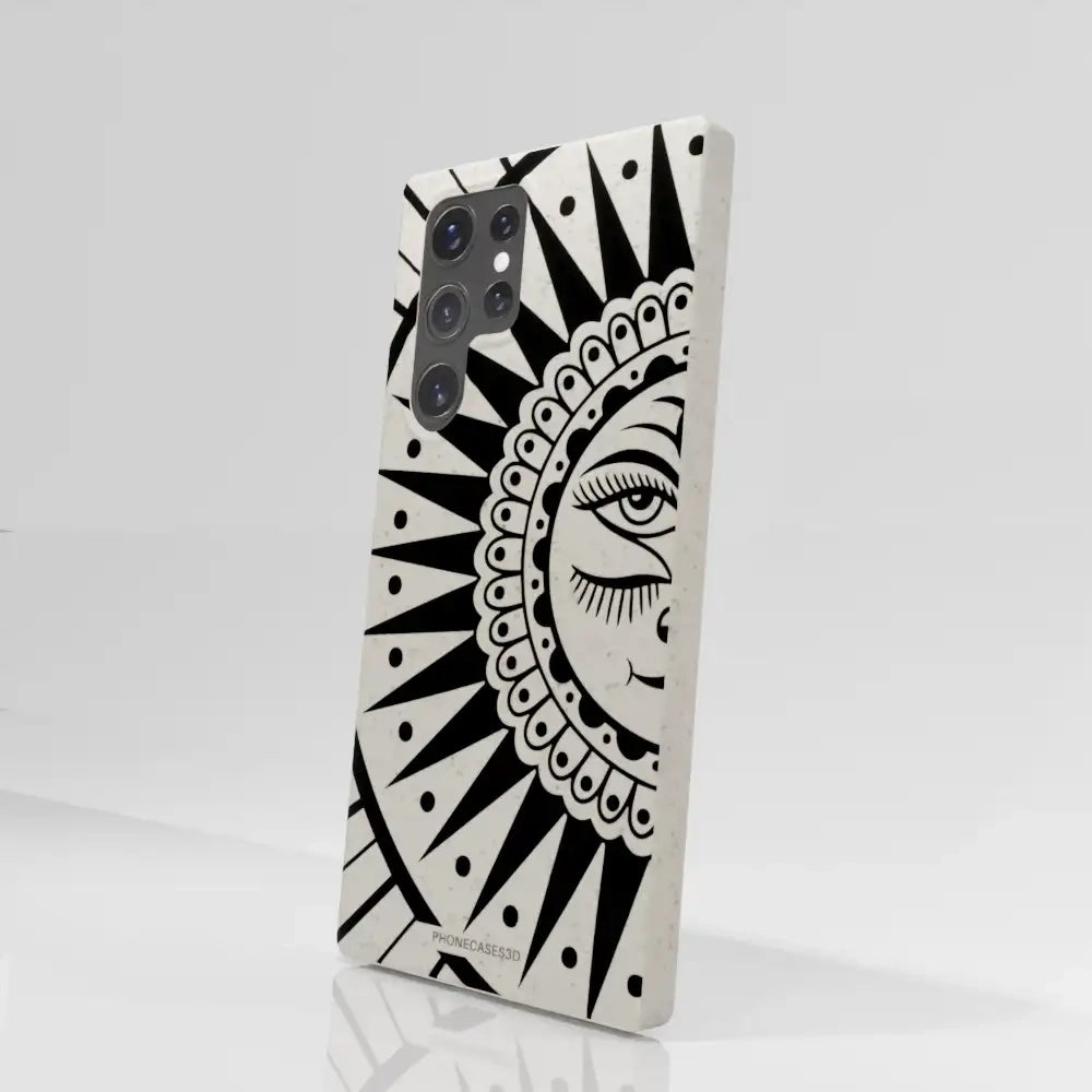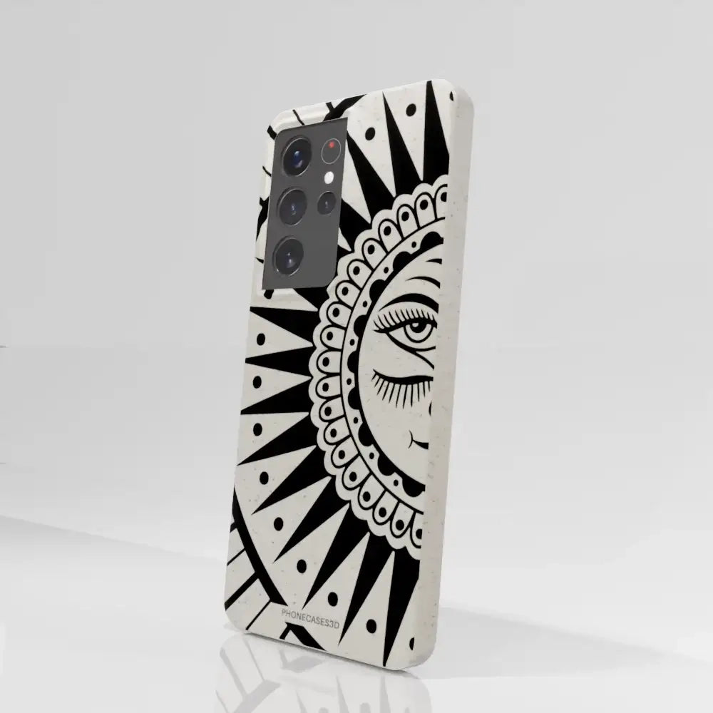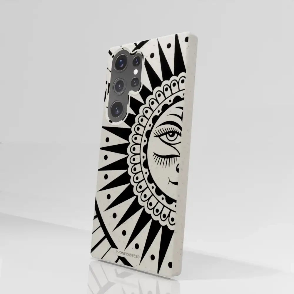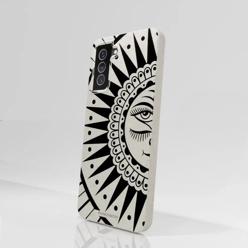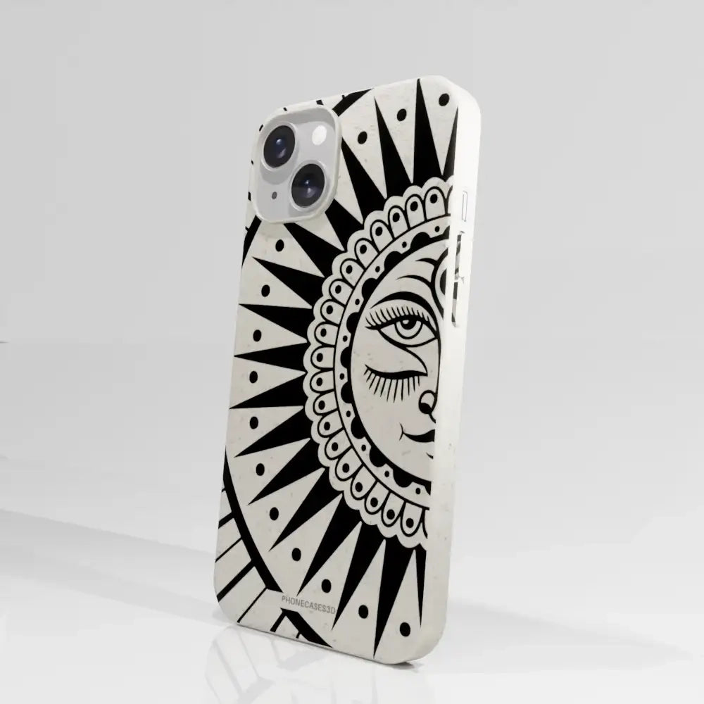 Sinsentido Official Compostable Phone Case Design Black and White Cosmic Sun