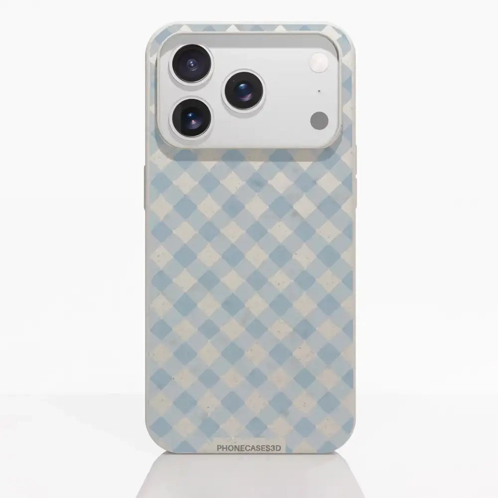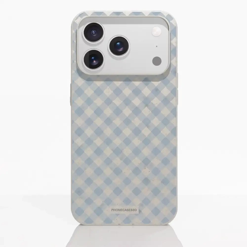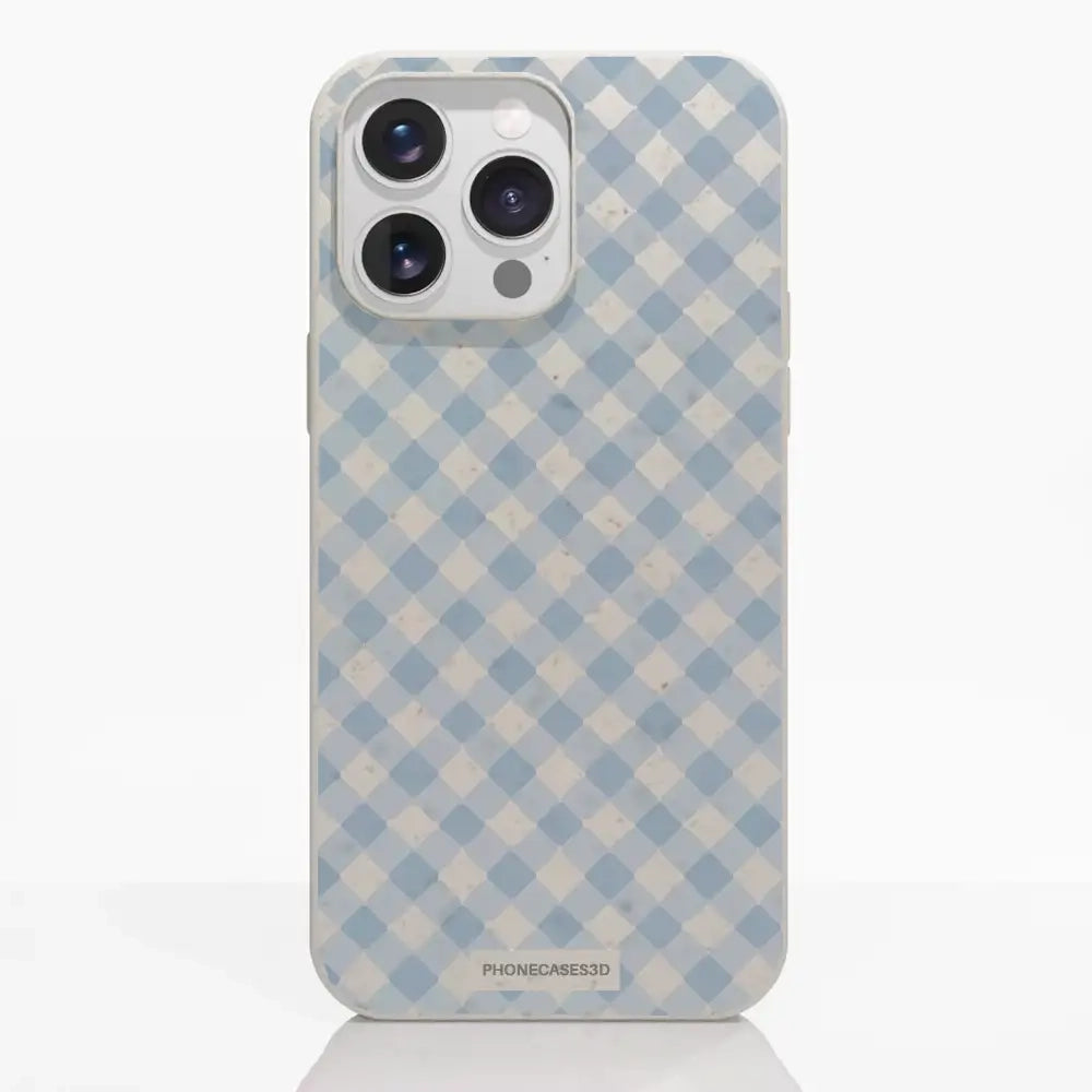 Martine Official Compostable Phone Case Design Vichy Blue Pattern