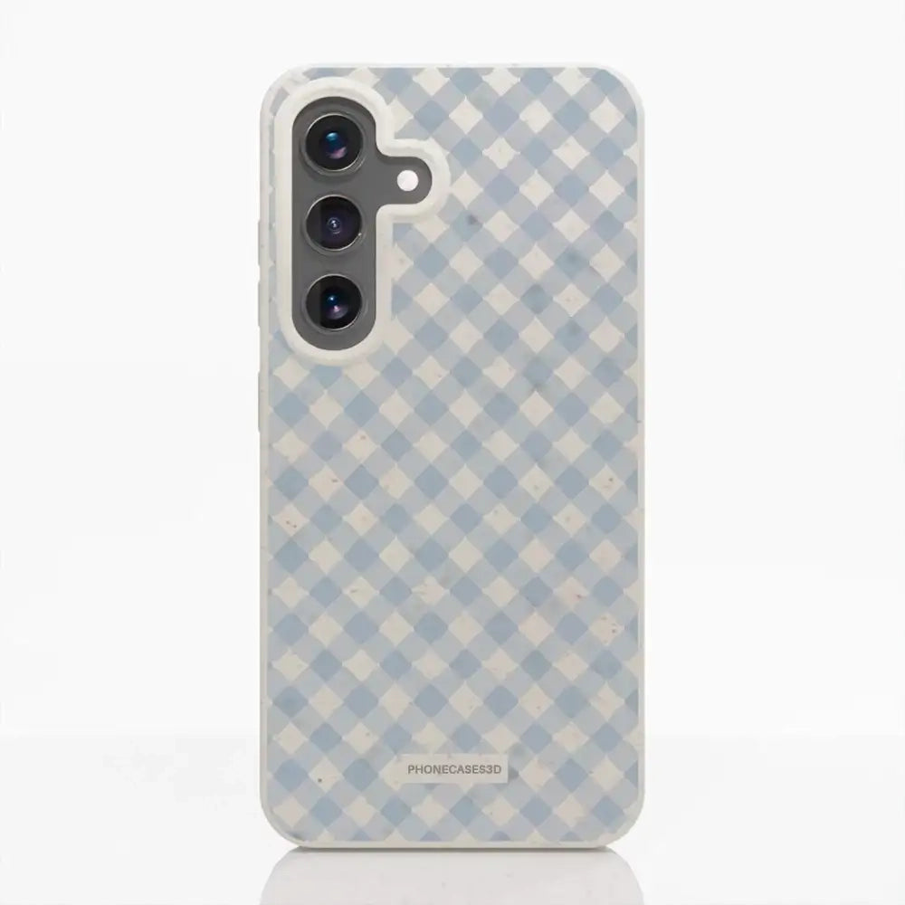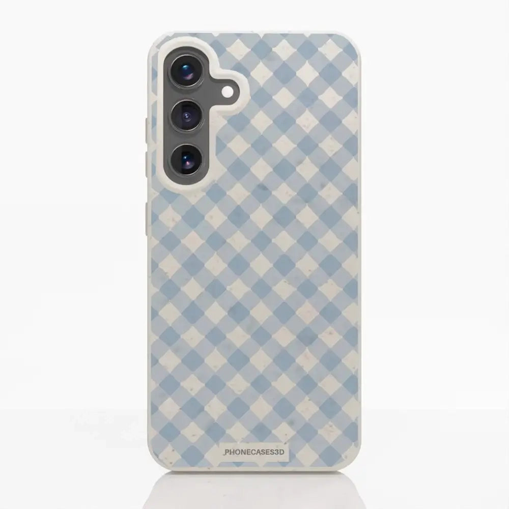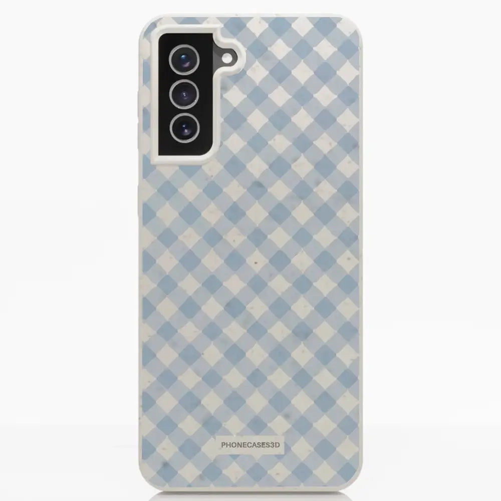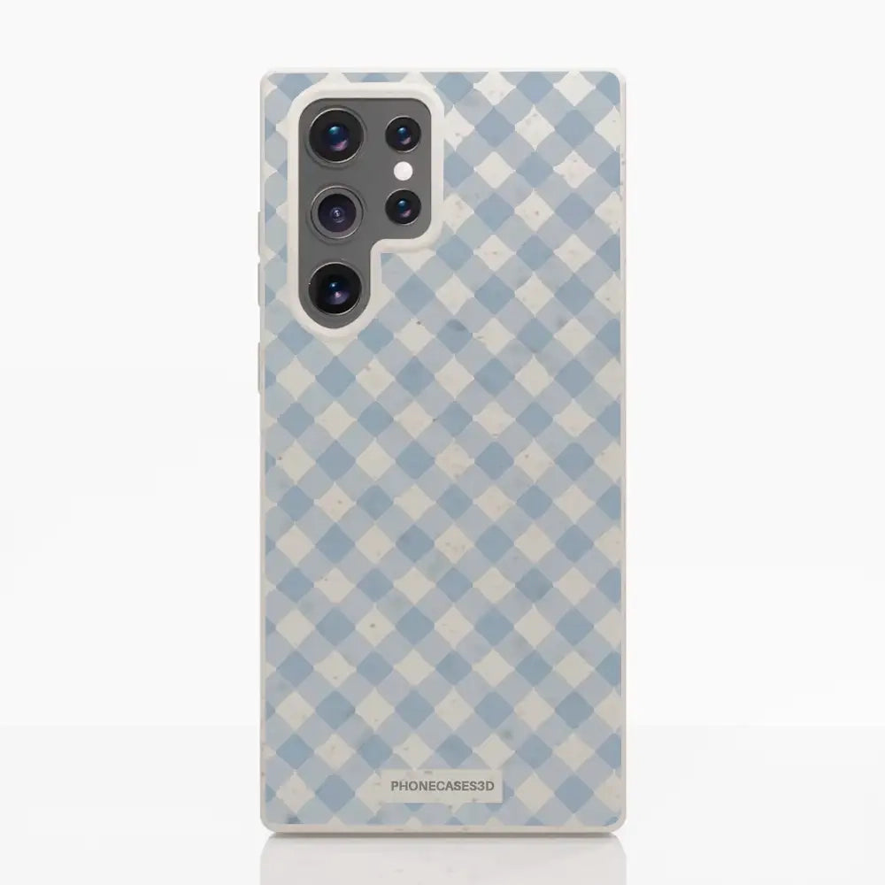 Martine Official Compostable Phone Case Design Vichy Blue Pattern