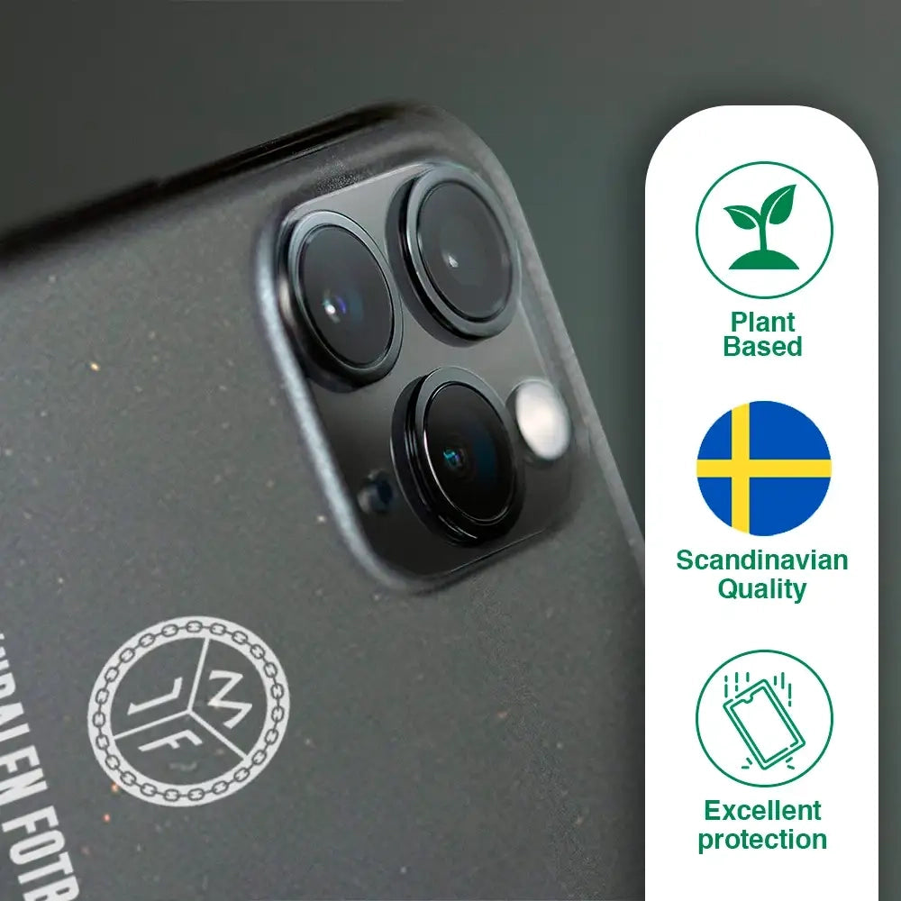 Våre komposterbare mobildeksler er laget av plantebaserte og naturlige fibre. De inneholder verken petroleum eller mikroplast og gir den samme beskyttelsen og holdbarheten som et tradisjonelt deksel.